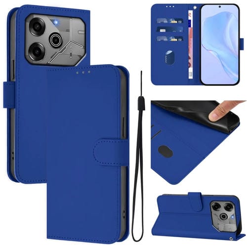 Funda de Piel para Tecno Spark 6 Go/Go 2021 con Textura y Cordón (Azul Oscuro)