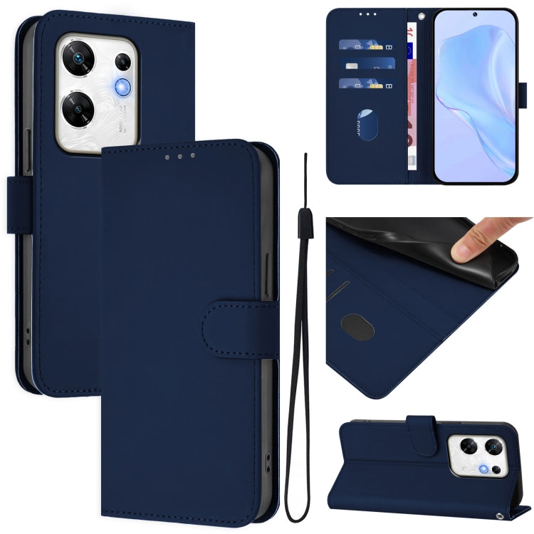Funda de Piel Sintética con Cordón para Teléfono Infinix Zero 30 4G (Azul Marino)