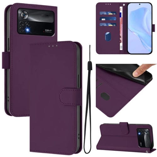 Funda de Piel Sintética con Cordón para Xiaomi Poco X4 Pro 5G (Violeta)