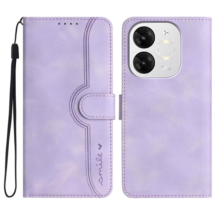 Funda de Piel Sintética con Diseño de Corazón para Itel A80 (Morado)