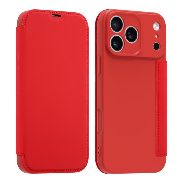 Funda de piel sintética con tacto similar a la piel líquida para iPhone 17 Pro Max con ranuras para tarjetas (Roja)