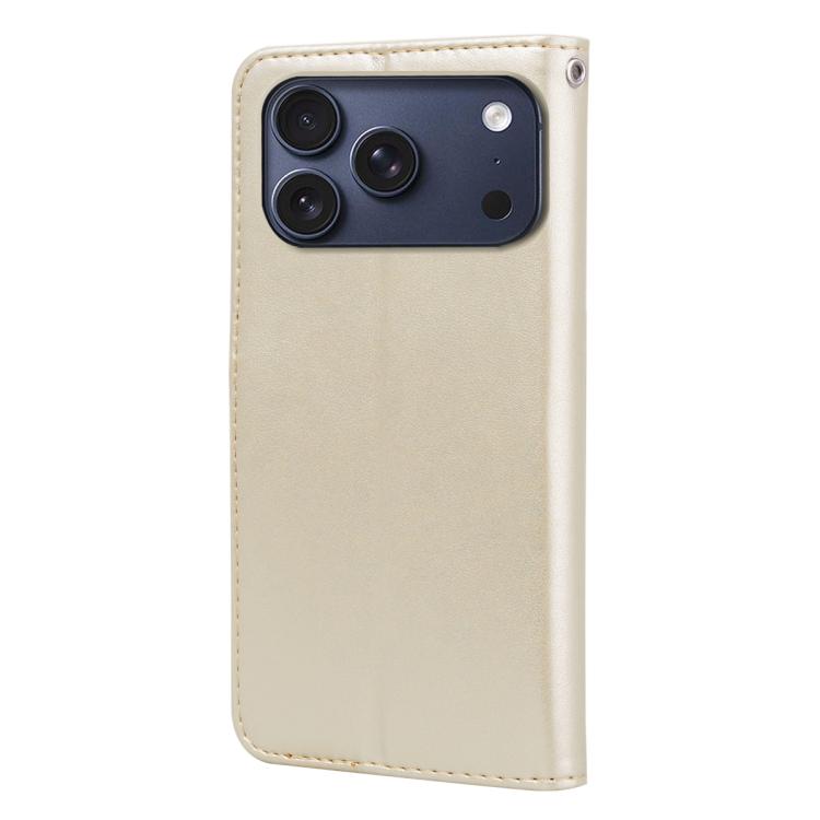 Funda de piel sintética con tapa abatible y relieve rosa para iPhone 17 Pro (dorada)