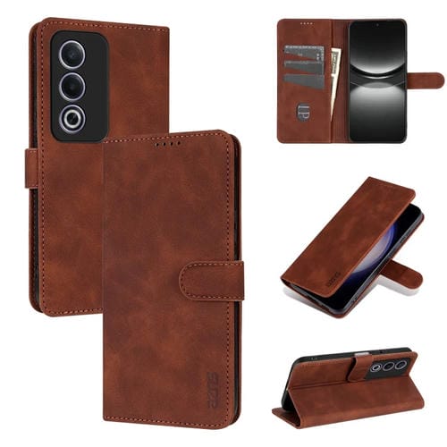 Funda de Piel con Tapa Azns con Textura de Becerro para Oppo A3X 5G / A3 Energy 5G (Marrón)