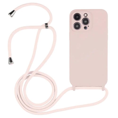 Étui en silicone liquide pour iPhone 15 Pro avec cordon bandoulière (rose sable)