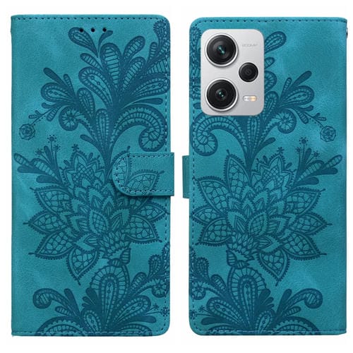 Funda de Teléfono con Hebilla Magnética y Encaje Floral En Relieve para Redmi Note 12 Pro+ 5G Global con Correa para la Muñeca (Verde)