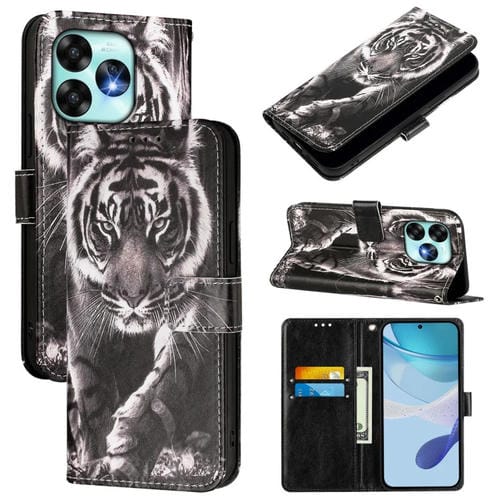 Funda de Teléfono Cuero Umidigi A15 A15C A15T Patrón Tigre (Blanco y Negro)