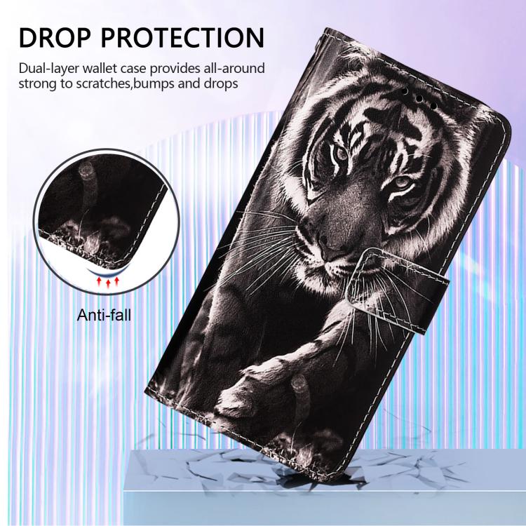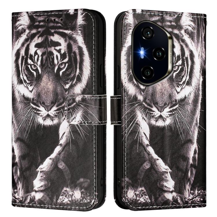 Funda de Cuero para Honor 300 Pro/300 Ultra con Tejido Liso y Estampado Tigre (Blanco y Negro)