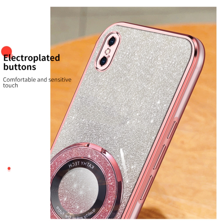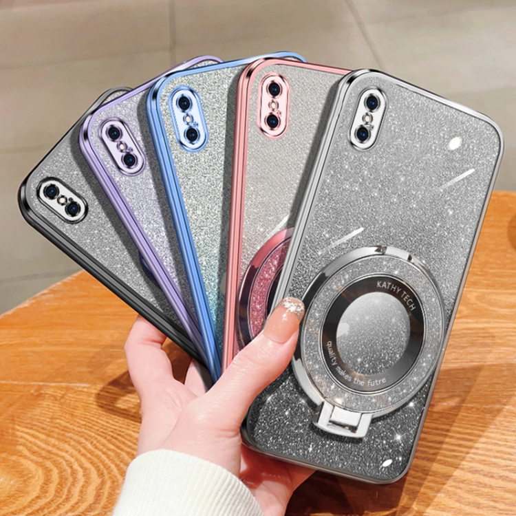 Funda de Teléfono TPU con Soporte Redondo y Purpurina Degradada para iPhone X/Xs (Plateada)