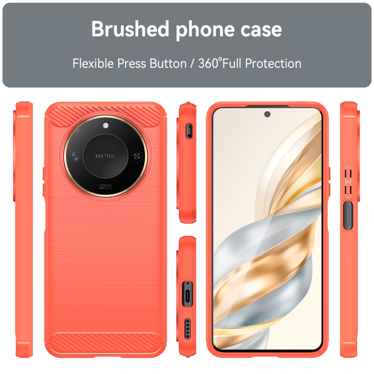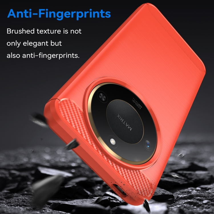 Funda de Teléfono TPU con Textura Cepillada Fibra de Carbono para Honor X60 (Rojo)