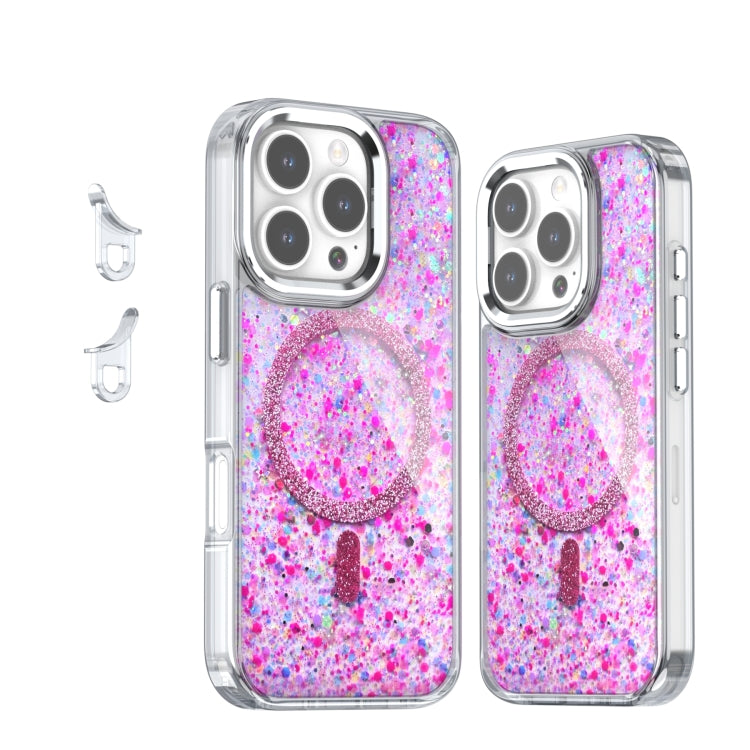 Funda de Teléfono TPU Magnética Magsafe con Purpurina Epoxi para iPhone 16 Pro (Rojo Ciruela)