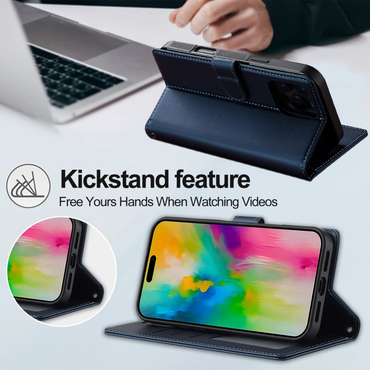 Funda de Teléfono Desmontable Pu Magsafe con Cordón para iPhone 16 Pro Max Lc.Imeeke L2 Series (Azul)