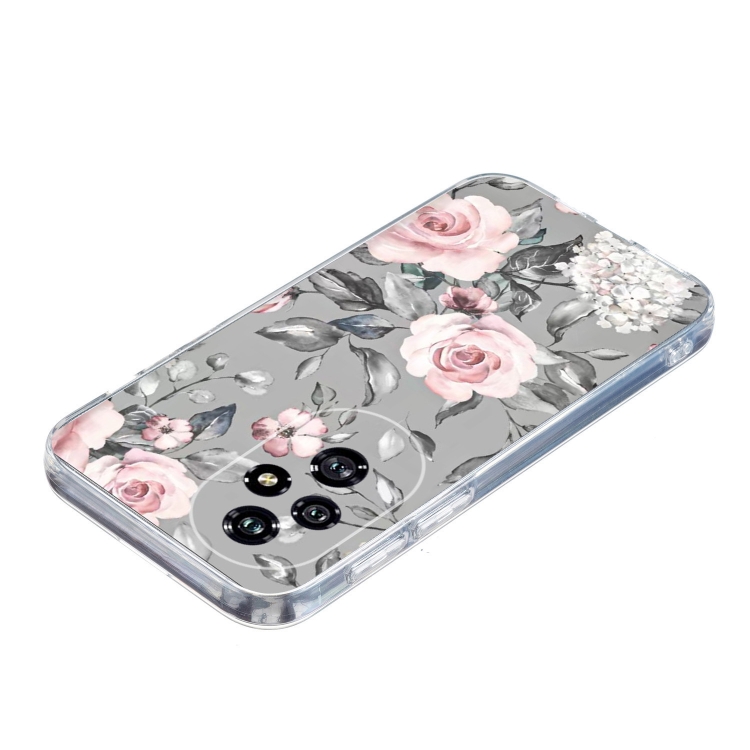 Funda TPU Honor 200 con Patrón de Pintura Colorida Flores (Gris)