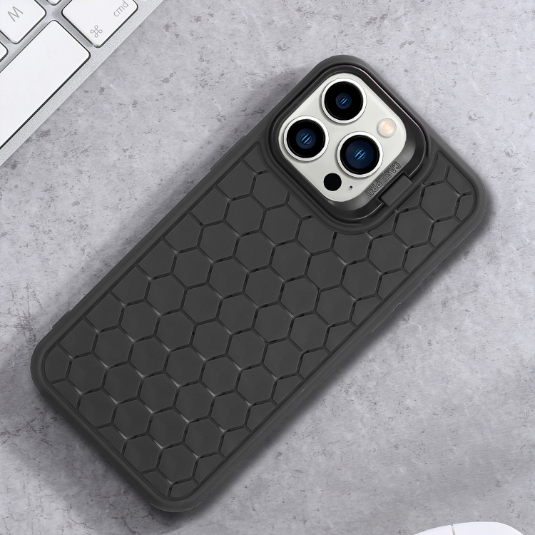 Funda TPU con Soporte Radiante en Panal para iPhone 16 Pro con Cordón (Negro)