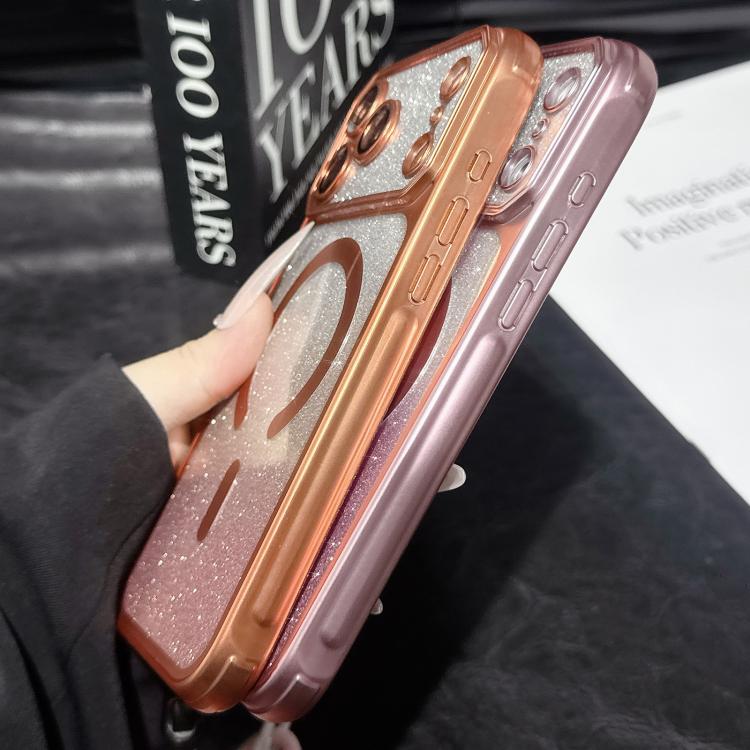 Funda de TPU MagSafe con ventana grande, brillo degradado, mate, galvanizada, con correa de mano para iPhone 17 Pro Max (rosa)