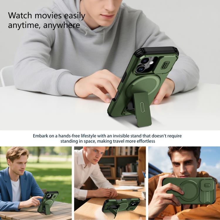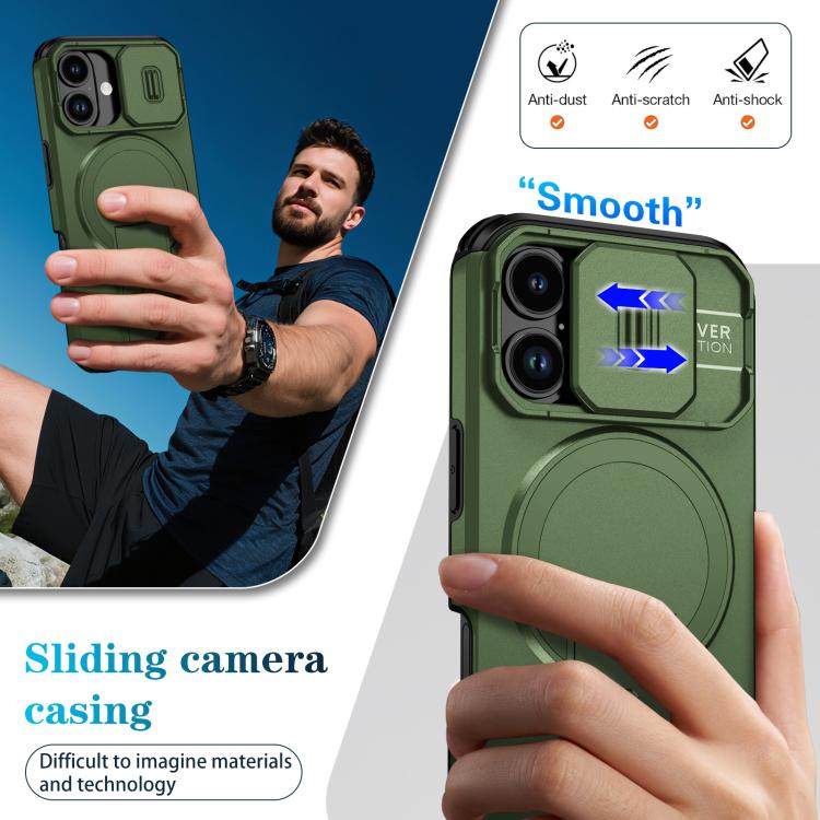 Funda deslizante Camshield con soporte MagSafe para iPhone 17 (verde)