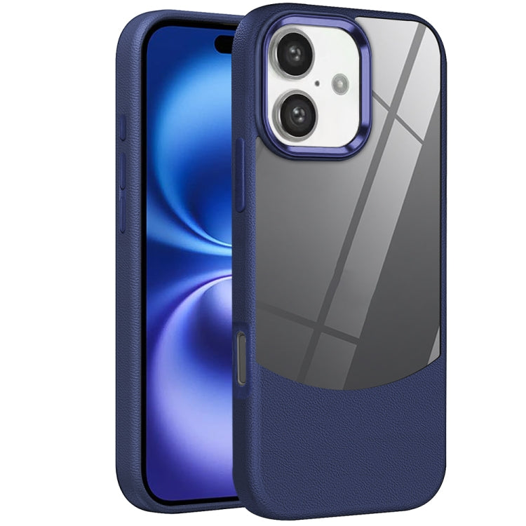 Funda híbrida para iPhone 16 acrílico y TPU textura de Lichi (Azul)