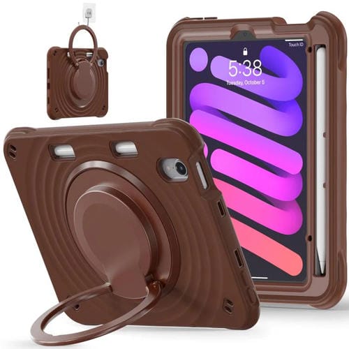 Funda Híbrida de Silicona para Tableta y PC con Asa Giratoria para iPad Mini 2024/Mini 6 (Chocolate)