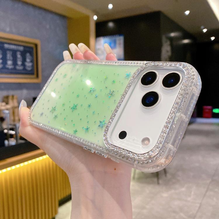 Funda híbrida de TPU con patrón holográfico de estrellas y cobertura total IMD para iPhone 17 Pro Max (verde)