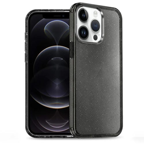 Funda híbrida TPU y PC con purpurina en polvo para iPhone 12 Pro (Negra)