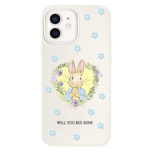 Funda híbrida TPU y PC iPhone 12 con Tacto Sedoso (Conejo con Flores y Flores en Blanco)
