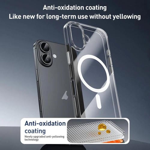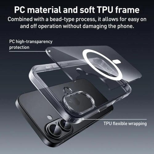 Funda híbrida de TPU y PC transparente con botones metálicos Magsafe para iPhone 17 ZGA (transparente)