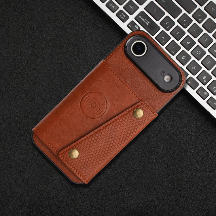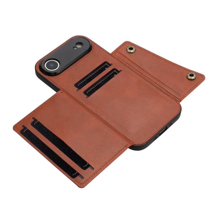 Funda magnética con doble hebilla y ranuras para tarjetas para iPhone Air (marrón)