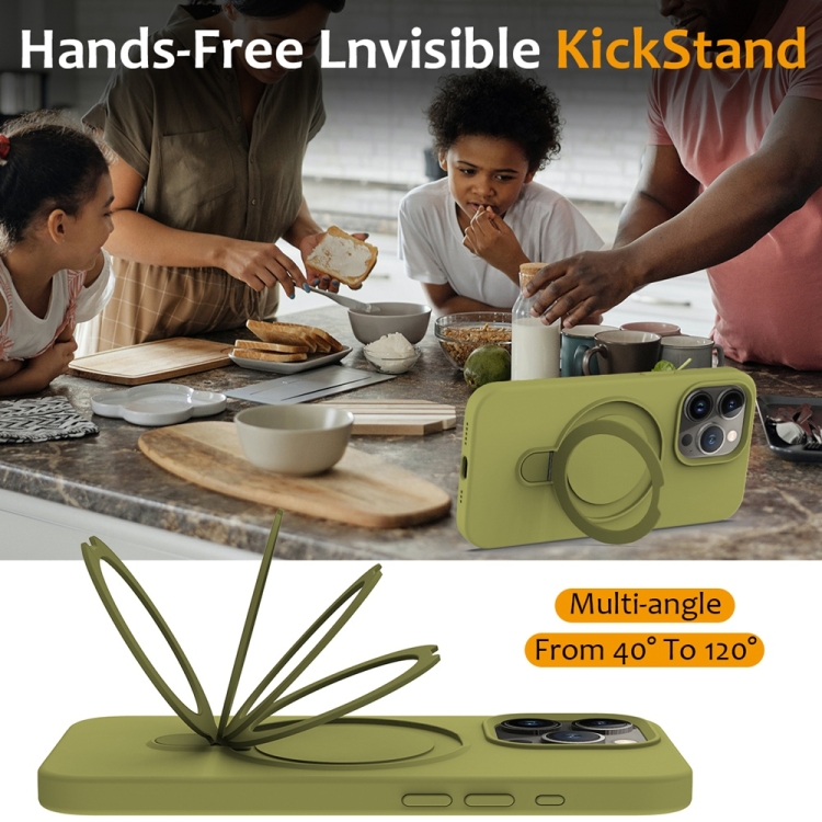 Funda Magnética de Silicona Líquida Magsafe para iPhone 16 Pro Max con Soporte para Anillo (Verde Sauce)