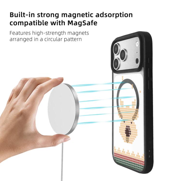 Funda magnética resistente con borde negro pintado de la serie navideña para iPhone 17 Pro Max (Ciervo de punto)