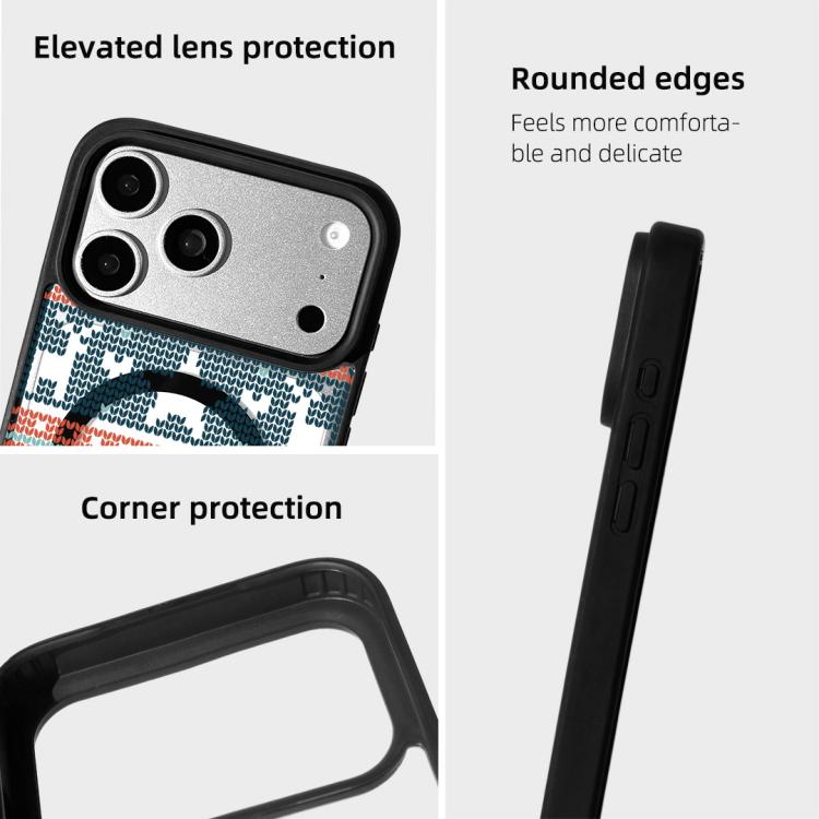 Funda magnética resistente con borde negro pintado para iPhone 17 Pro Max, serie navideña (Navidad tejida)