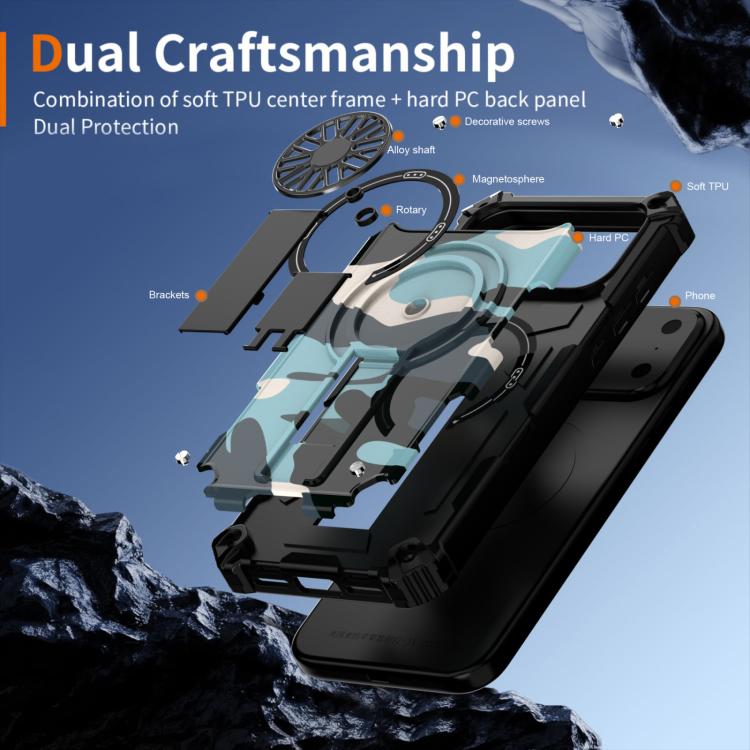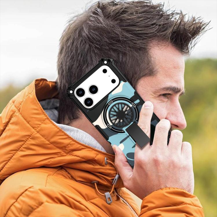 Funda MagSafe con soporte giratorio y diseño de camuflaje para iPhone 17 (camuflaje verde)