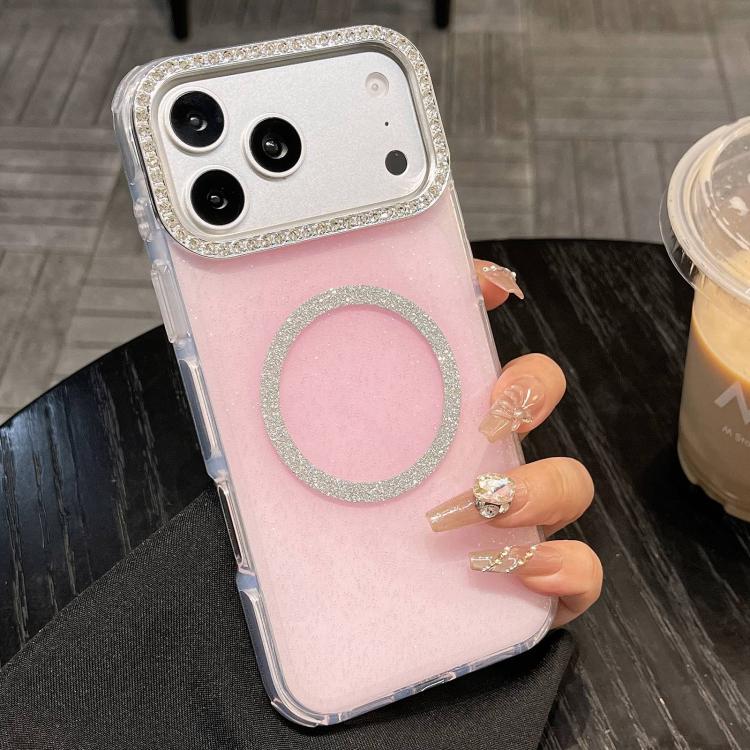 Funda MagSafe semitransparente con purpurina y bordes redondeados para iPhone 17 Pro Max (rosa)