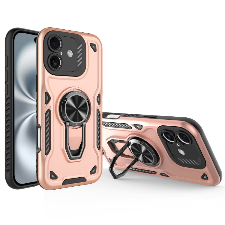 Funda para iPhone 16 con Soporte Giratorio de Metal y Carcasa Magnética TPU y PC (Dorada)