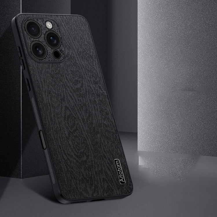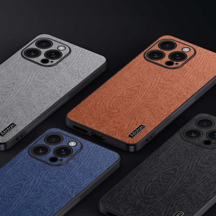Funda para iPhone 16 Pro Piel de Corteza de Árbol a Prueba de Golpes (Gris)