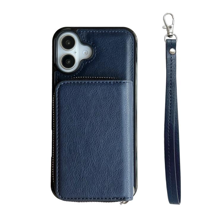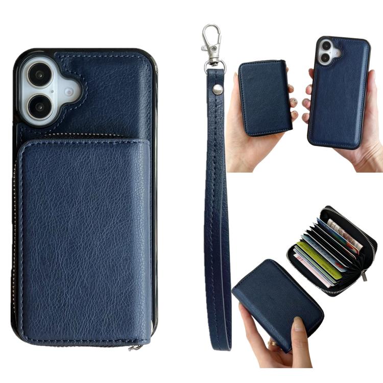 Funda para iPhone 17 con cremallera, ranuras para 11 tarjetas y cordón (azul)