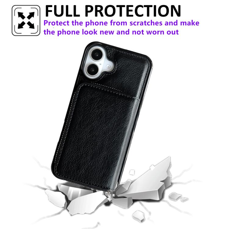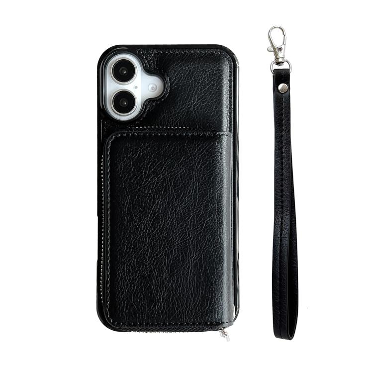 Funda para iPhone 17 con cremallera, ranuras para 11 tarjetas y cordón (negra)