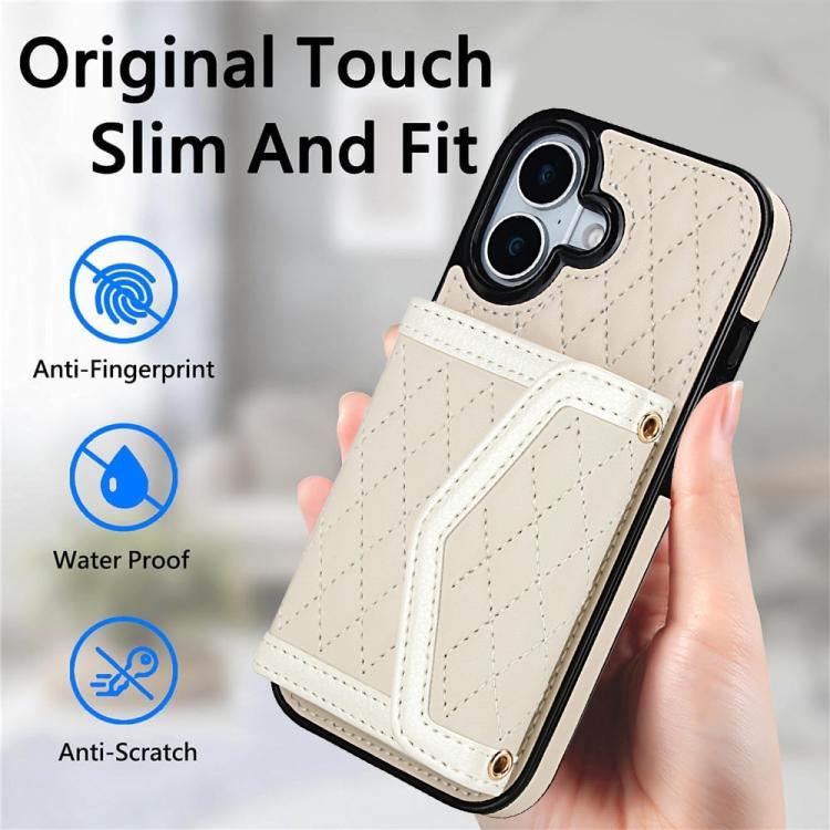 Funda para iPhone 17 con textura rómbica y cordón largo (beige)