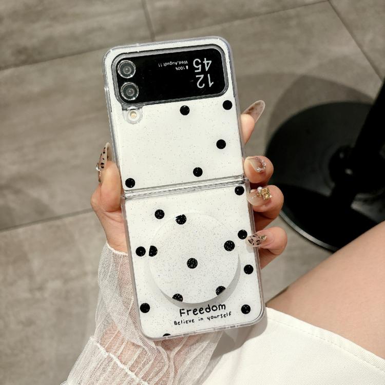 Funda para Samsung Galaxy Z Flip4 con diseño de puntos brillantes y soporte (blanca)