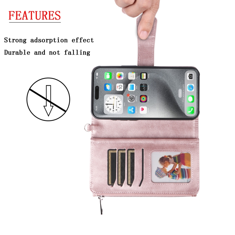 Funda para Teléfono 2 En 1 con Cremallera y Resistente a Los Golpes iPhone 16 Pro Max (Oro Rosa)