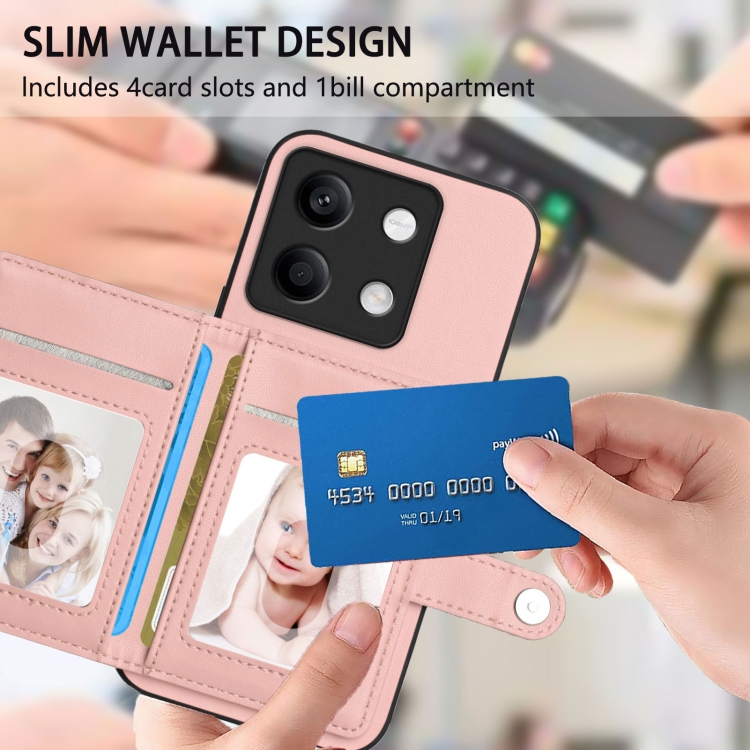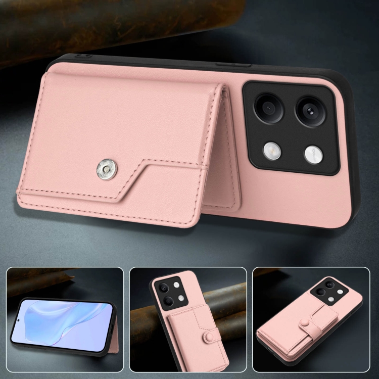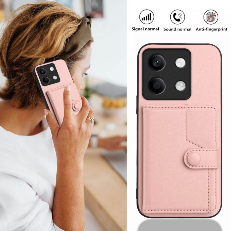 Funda para Teléfono Antirrobo con Botón y Tarjeta Rfid para Redmi Note 13 5G (Rosa)
