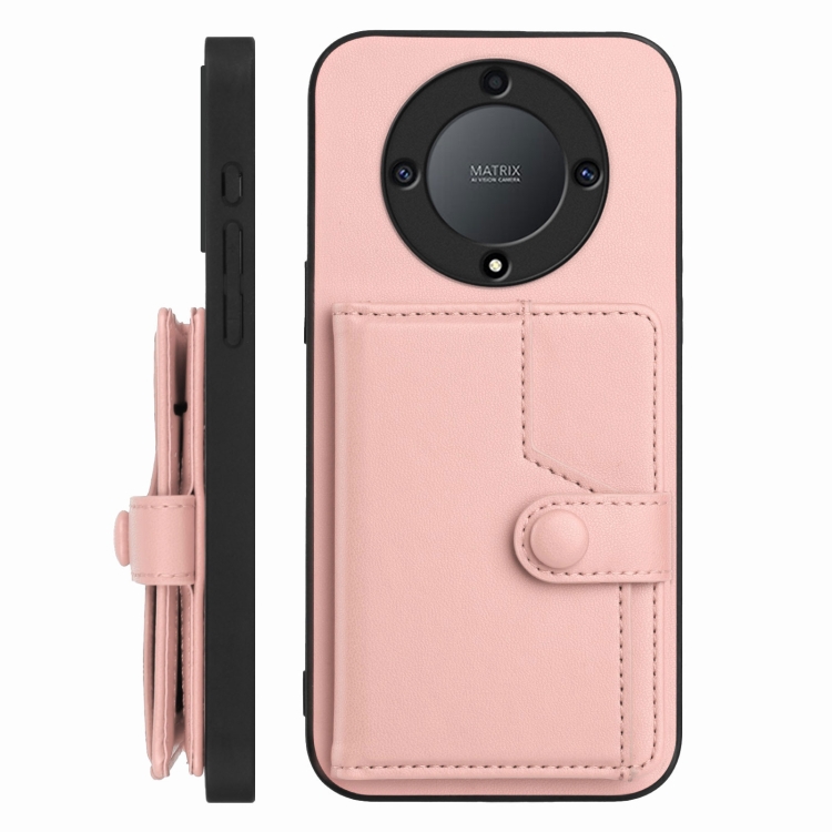 Funda para Teléfono Antirrobo con Botón y Tarjetero RFID para Honor X9A/Magic5 Lite (Rosa)