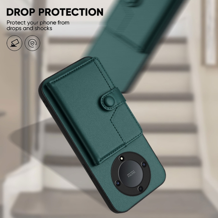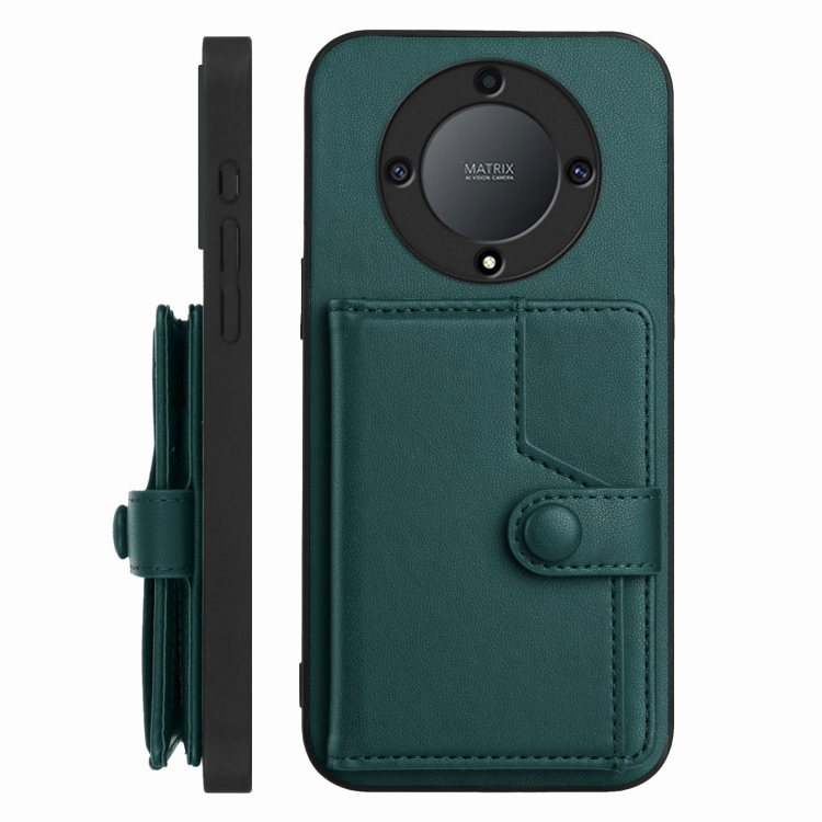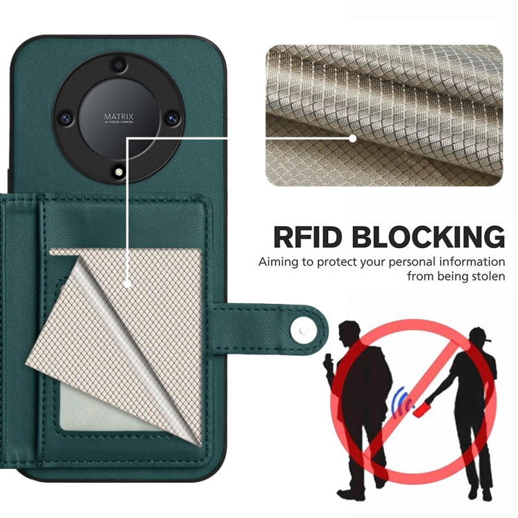 Funda para Teléfono Antirrobo con Botón y Tarjetero RFID para Honor X9A/Magic5 Lite (Verde)