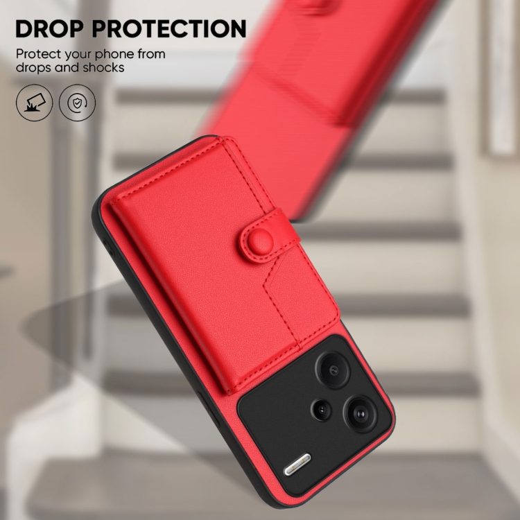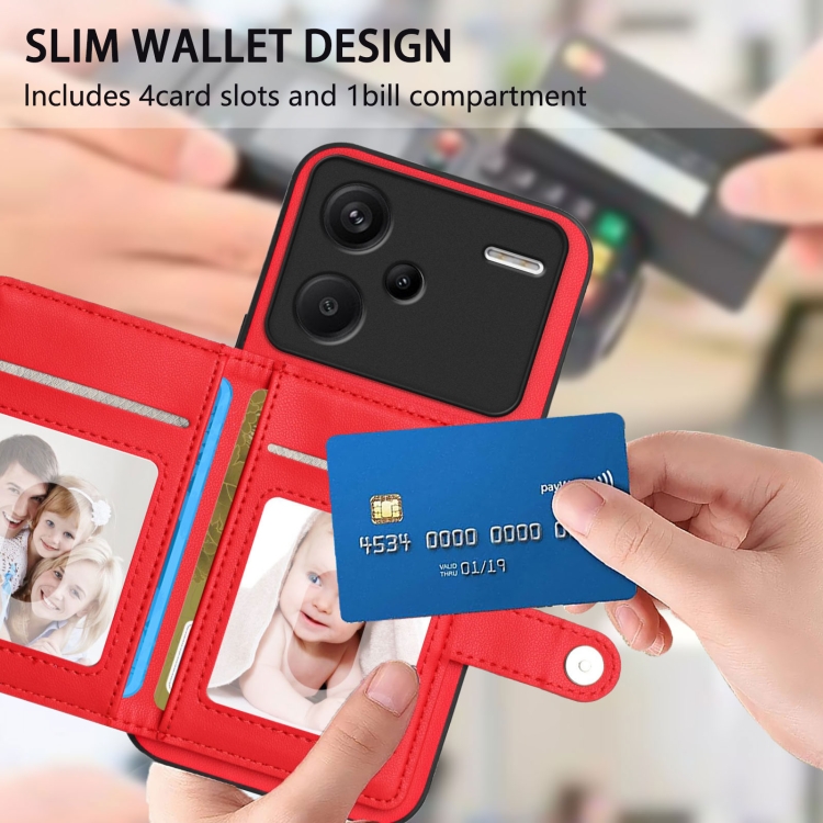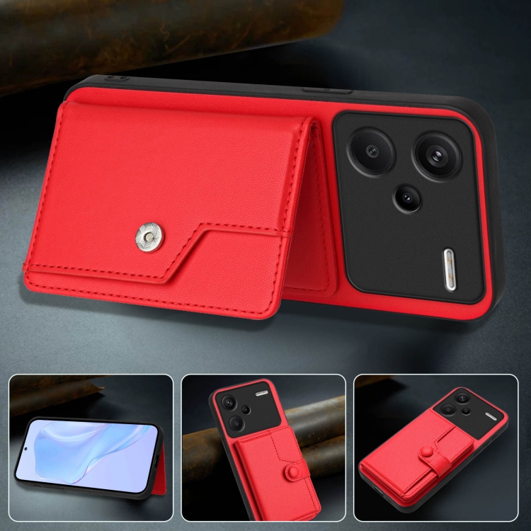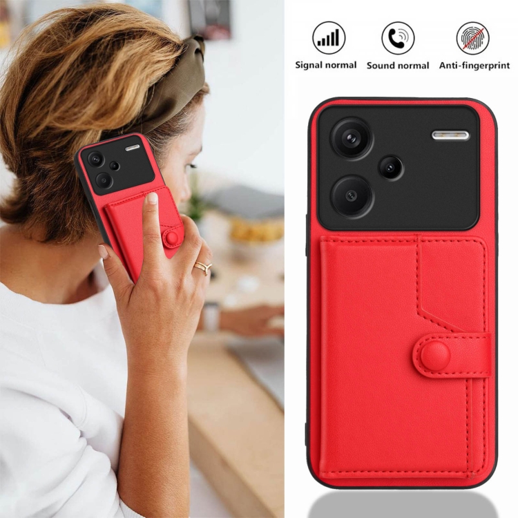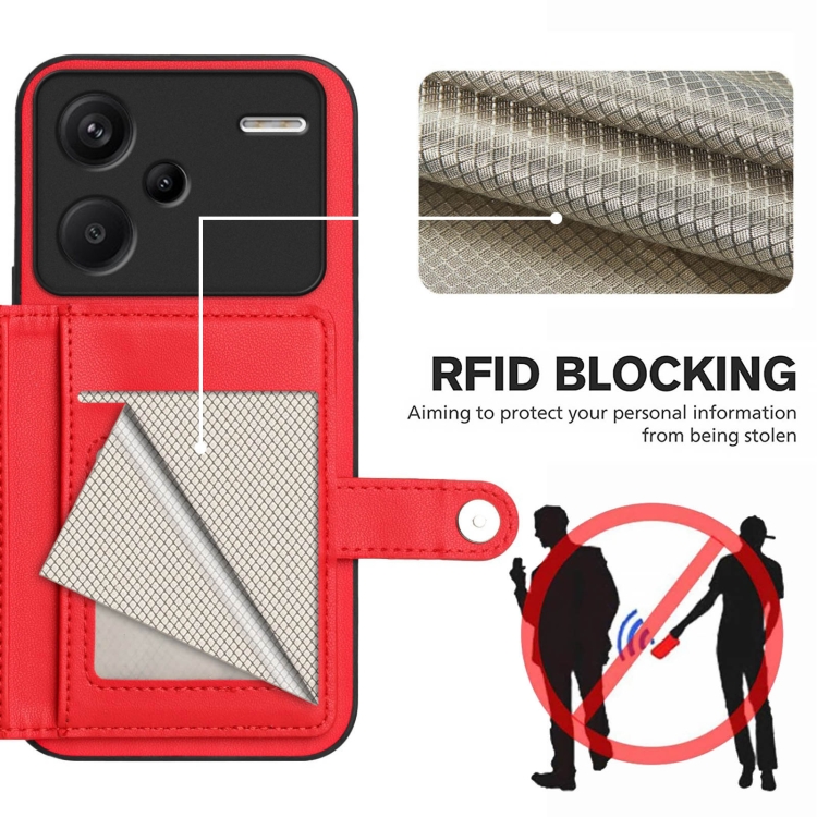 Funda para Teléfono Antirrobo con Botón y TaRJetero Rfid para Redmi Note 13 Pro+ (Roja)