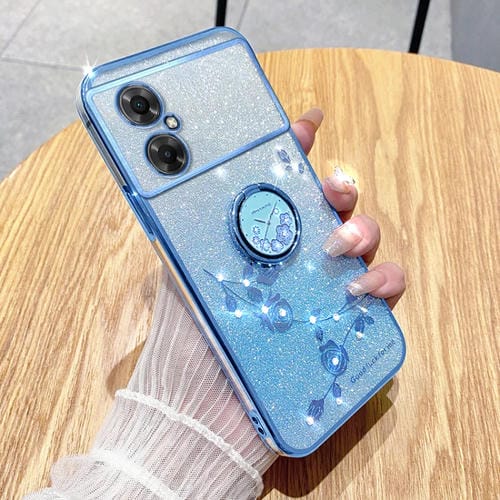 Funda para Teléfono con Anillo de Flores Inmortal con Purpurina Degradada para Xiaomi Poco M5 5G, Todo Incluido (Azul)