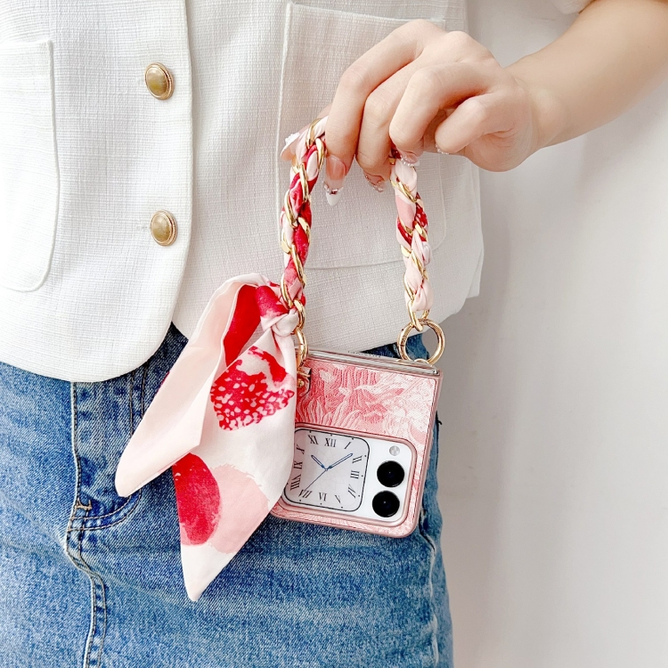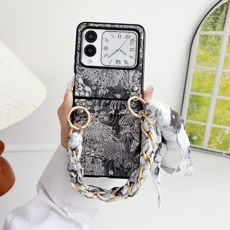 Funda para Teléfono Huawei Nova Flip con Cobertura Total y Estilo Bordado (Negra) con Bufanda o Pulsera