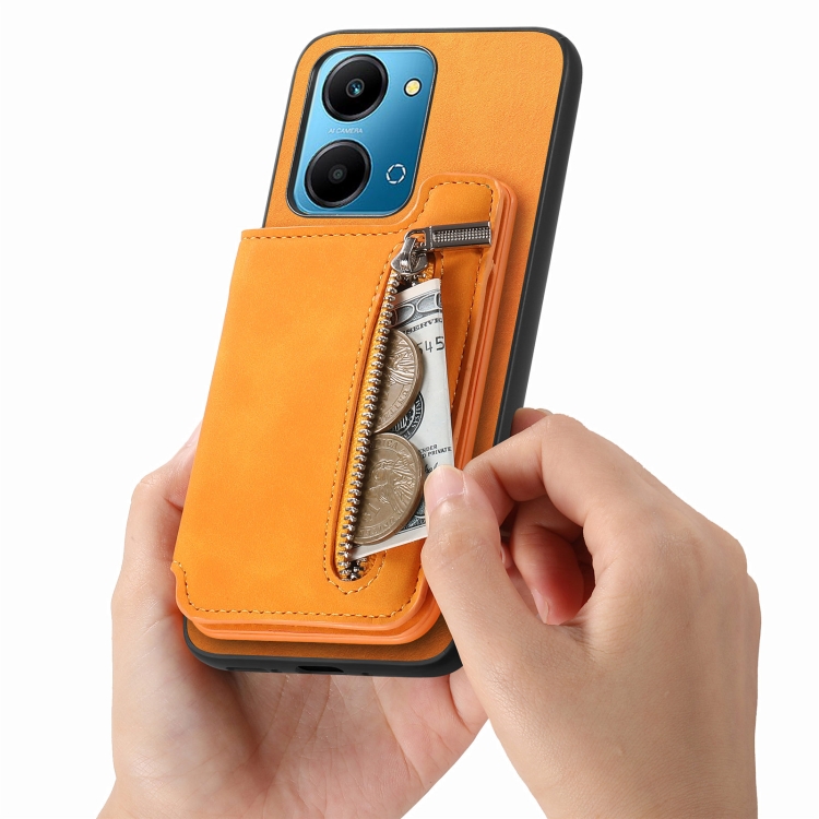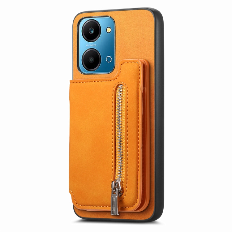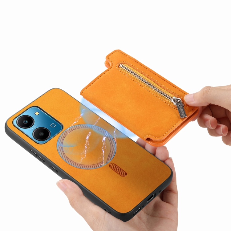 Funda para Teléfono Honor 90 Pro 5G con Cremallera Magsafe Retro y Porta Tarjeta (Amarilla)