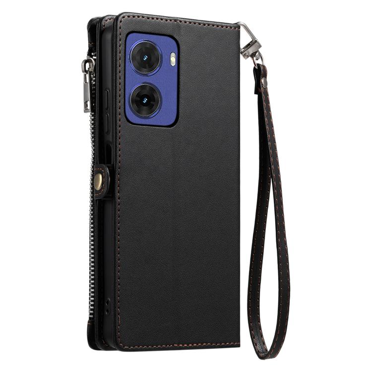 Funda para Teléfono Motorola Moto G05 con Cremallera y Ranura para Tarjetas (Negro)
