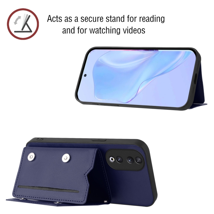 Funda para Teléfono Honor 90 con 4 Ranuras para Tarjetas y Correa para Muñeca (Azul)
