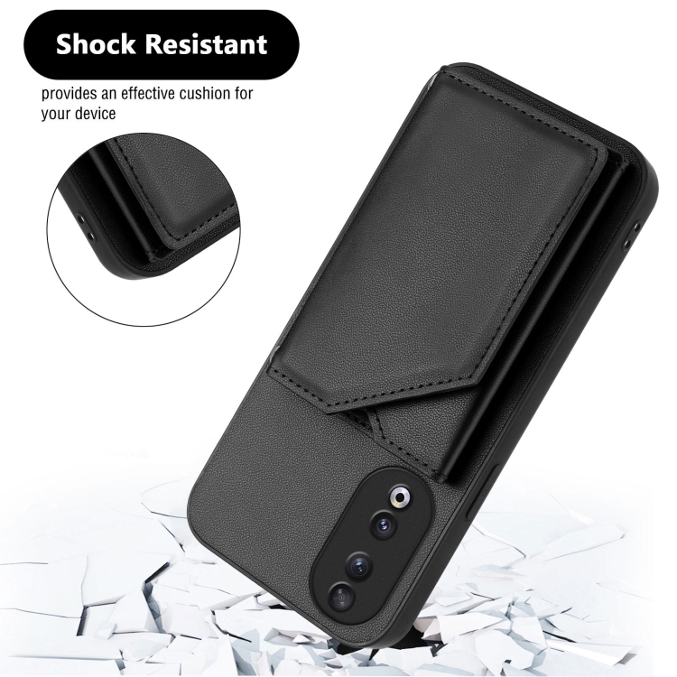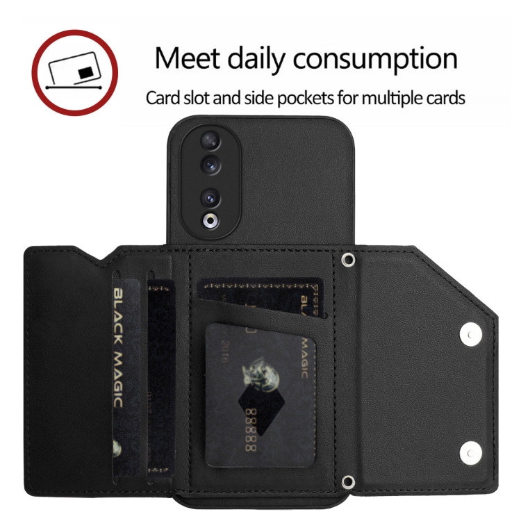 Funda para Teléfono Honor 90 con 4 Ranuras para Tarjetas y Correa para Muñeca (Negra)