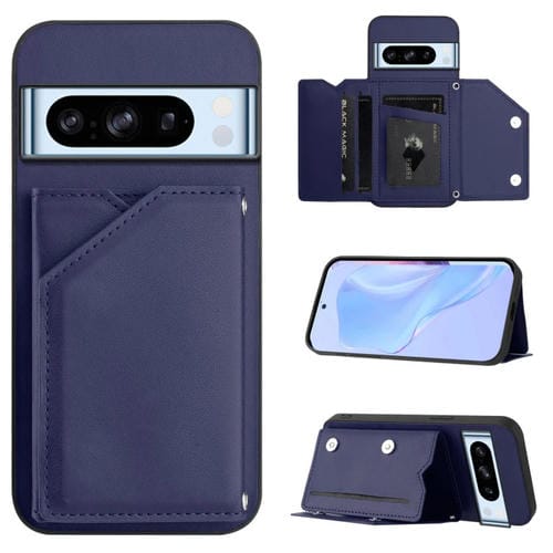 Funda para Teléfono Google Pixel 8 Pro con 4 Ranuras para Tarjetas y Correa para Muñeca (Azul)