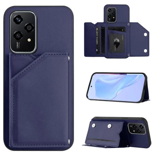 Funda para Honor 200 Lite 5G con 4 Ranuras para Tarjetas y Correa para Muñeca (Azul)
